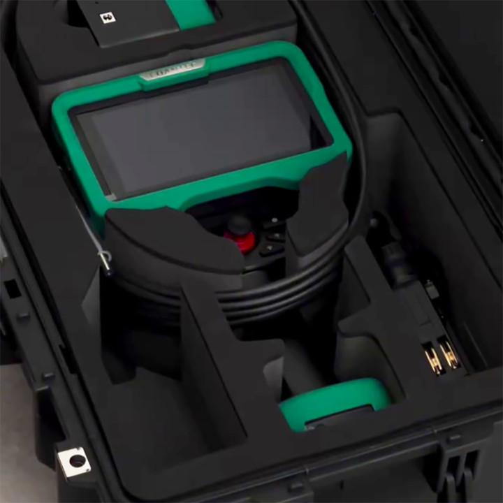 Корпус видеоэндоскопа изготовлен из более устойчивого к истиранию и царапинам материала ABS + PC, а экран дисплея оснащен силикагелем, препятствующим падению, чтобы сделать его более прочным. Эндоскоп поставляется с высокопроизводительным профессиональным кейсом, с которым легко путешествовать.