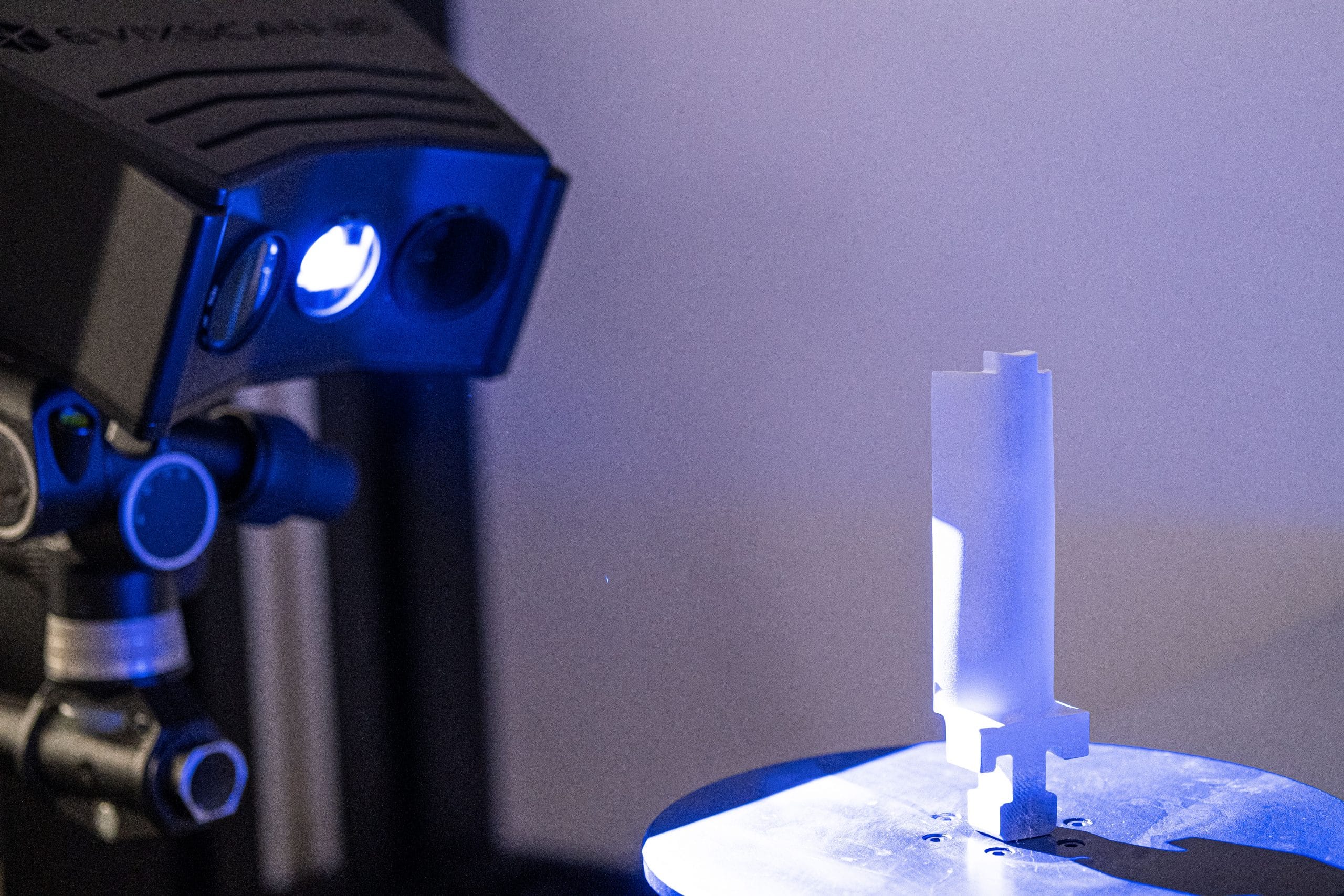 Оптический 3D сканер представляет собой устройство на основе высокоскоростных камер последнего поколения с КМОП-сенсорами и светодиодным источником синего света — сочетание обеих технологий позволяет очень точно воспроизводить сканируемую поверхность (точность до 6 мкм, разрешение 28 мкм) даже с объектами с темной поверхностью.