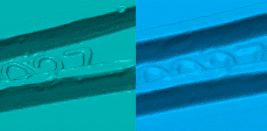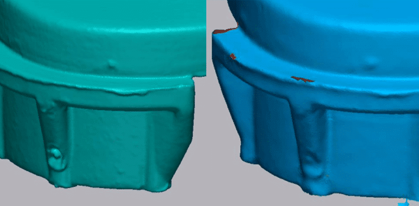 Сравнение деталей сканов (слева:Оптискан III , справа: 3D-сканер с другим дизайном)
